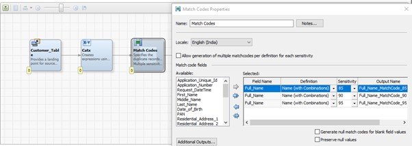 Note: – In this document the example is to generate match codes for the input parameters. Other nodes can be configured as required based on the business requirement.