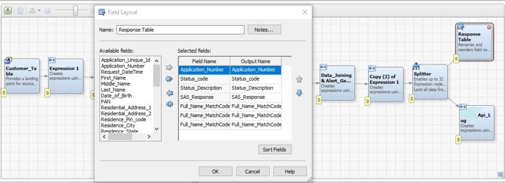Expand the Utilities tab and select the Field Layout node. Drag and drop to the job workspace. Change the order of columns as required and click on OK.
