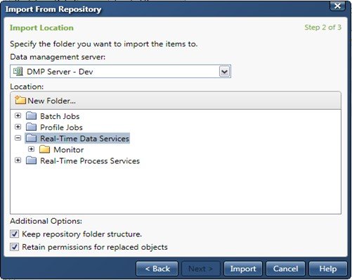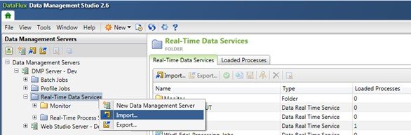 Select the Data Management Servers tab -> Expand the Data Management Servers -> Select Folder Real-Time Data Services -> Right-click -> Select the Import…option.
