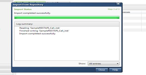 Once the import is completed the appropriate message will be displayed and the job is now seen in the folder imported to.