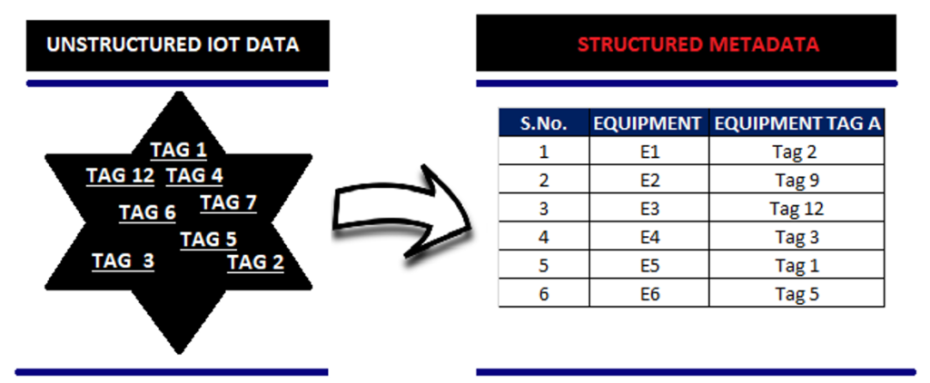 Every IoT sensor has a unique address linked to it which we will call a “TAG”. There are certain sets of tags that need to be identified before beginning with any data wrangling exercise, but what analyst neglects are the need to create metadata for successfully mapping all the tags to get an effective data structure to perform analytics.