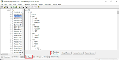 Clicking on Rules we can add rules by using Boolean operators for particular category. We can select Text View and can add Boolean operator manually and by selecting Tree View we can add Boolean operator by right clicking.