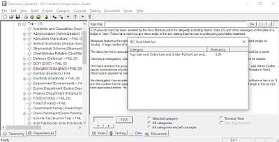 n my last blog, I have covered Text Analysis and Text Parsing. In this blog I am going to cover Text Analystics module i.e. SAS Content Categorization Studio. By using SAS Content Categorization Studio we can categorize the unstructured text data. This process is known as building taxonomy.